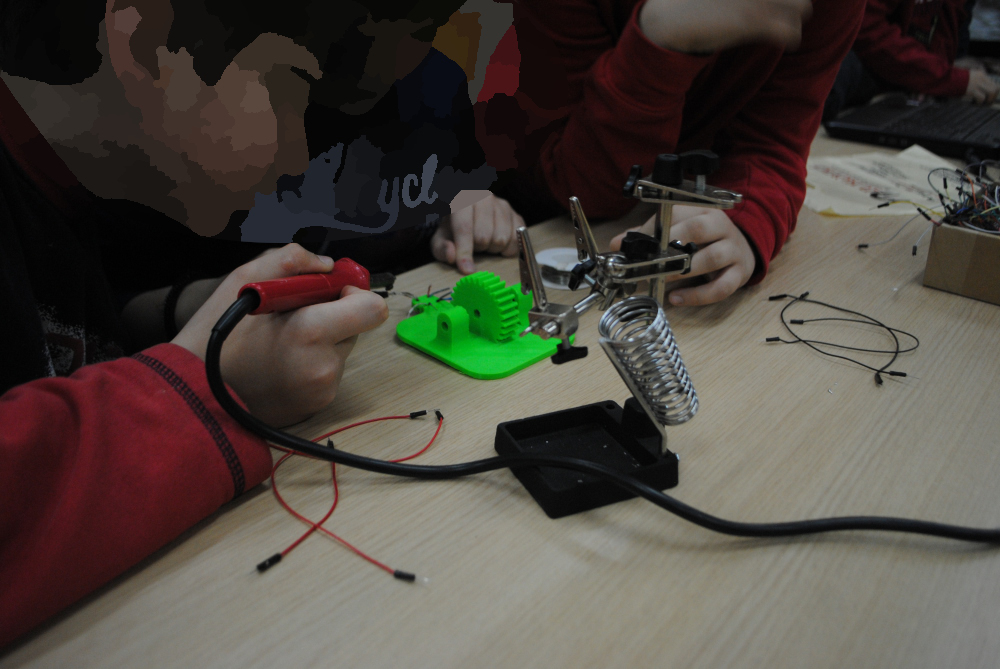 Για την συναρμολόγηση και την σύνδεση των ηλεκτρονικών τα παιδιά χωρίστηκαν σε διάφορες ομάδες εργασίας αναλαμβάνοντας συγκεκριμένες δουλειές (σύνδεση καλωδίων, κόλληση καλωδίων, μόνωση καλωδίων, βίδωμα κινητήρων και γραναζιών κ.α.)
